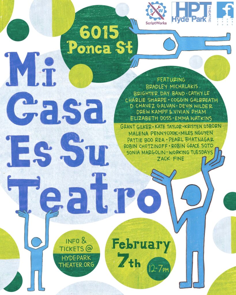 House concerts (Mariachi Relámpago, Matt the Electrician, Southpaw Jones), bimonthly art class with David Thornberry, playwrights group, The Sprint, Cabaret Montopolis, produced by Natalie George), book launches featuring Adam Soto, Short Story Night, The Paperback Game, unorthodox Jewish Holidays, and Mi Casa Es Su Teatro 2025, back by popular demand in 2026.